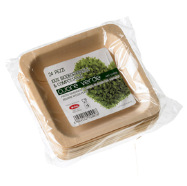 Piatti quadrati in legno - 14x14x2,5 cm - leone - conf. 24 pezzi